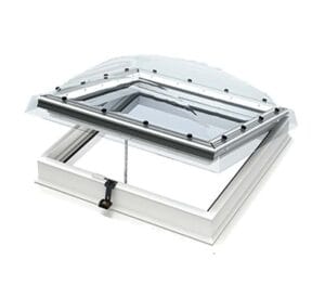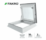 Ferestrele termoizolate de acces pe acoperiș terasă DRG completează gama de produse FAKRO pentru acoperișuri terasă. Pe lângă rolul de a aduce lumina naturală în încăperile aflate sub un acoperiș terasă, aceste ferestre permit un acces rapid și sigur pe acoperiș. Balamalele speciale și sistemul de deschidere asigură o operare ușoară și o deschidere a cercevelei până la un unghi de 80° la ferestrele cu dimensiunile 90×90 și 100×100, în timp ce pentru dimensiunile 90×120 și 120×120 se deschide la un unghi de 60°. Amortizoarele cu gaz asigură stabilitate cercevelei, protejând impotriva închiderii accidentale. Profilele exterioare sunt acoperite cu benzi antiderapante, crescând astfel siguranța în utilizare.