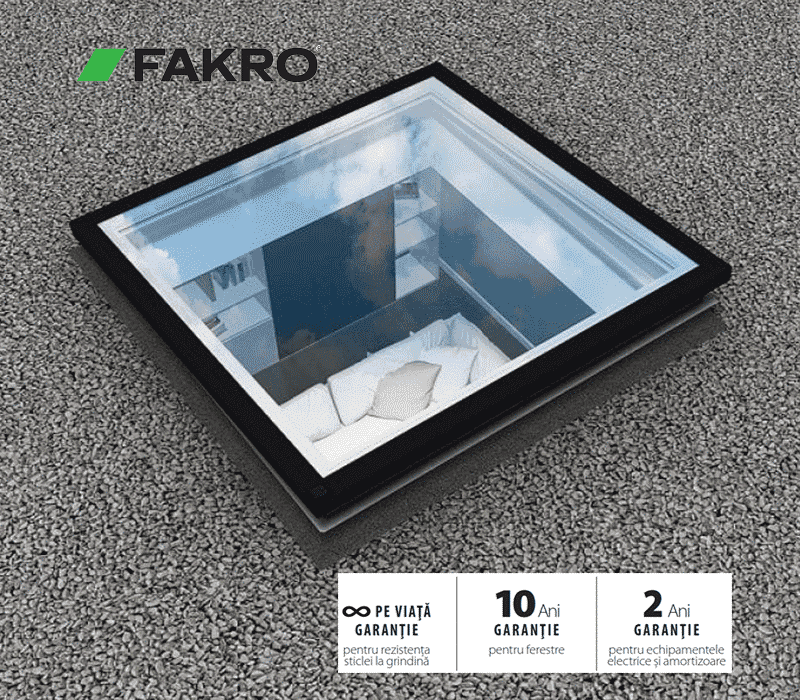 - Ferestrele DRG – ferestre de acces pe acoperiș terasă, cu geam antiefracție și un modul de sticlă suplimentar. . Coeficientul de izolare termică pentru întreaga fereastră este Uw=1.00 W/m2K, conform EN14351-1:2006+A2:2016.