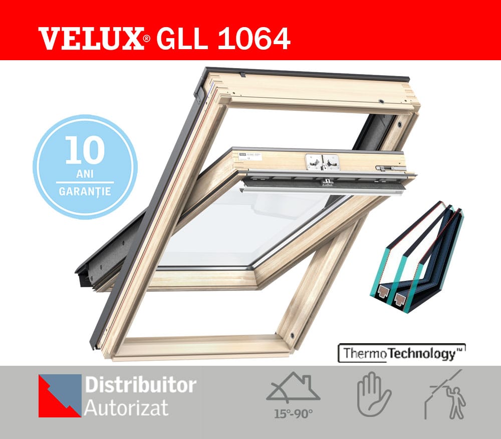 VELUX oferă 10 ani garanție pentru ferestrele de mansardă de lemn, rame de etanșare și geam. Pentru toate modelele de ferestre fără întreținere, cu acoperire de poliuretan, garanția este extinsă la 15 ani.