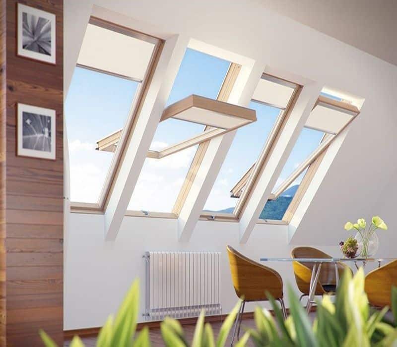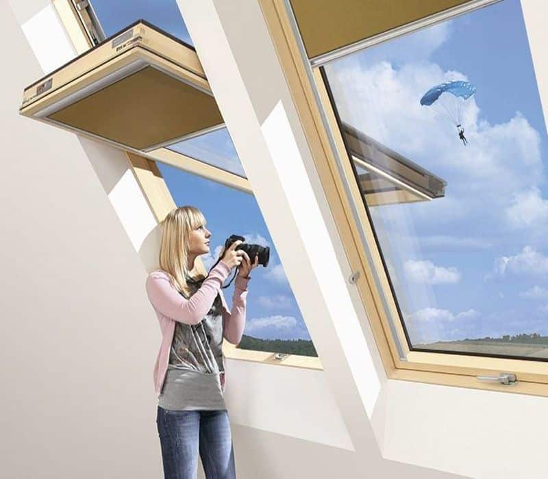 - Sunt singurele ferestre de mansardă de pe piaţă care răspund cerinţelor normei DIN 5034-1,(referitoare la luminatul încăperilor) în condiţiile montării pe un acoperiş cu panta cuprinsă între 39˚- 43˚.