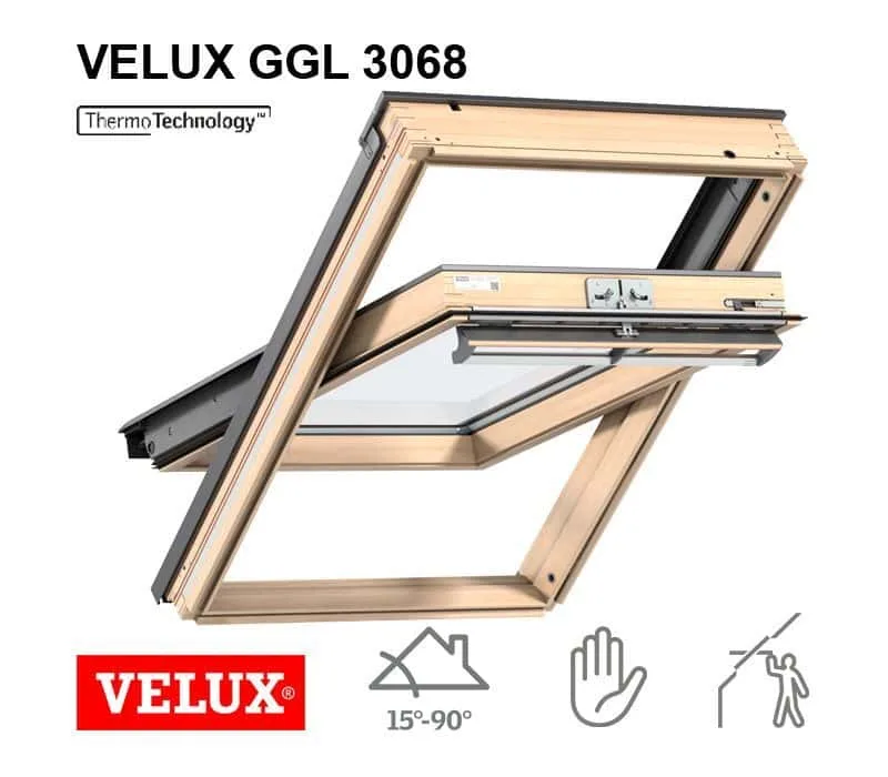 VELUX GGL 3068 din lemn lăcuit, cu maner sus, transforma orice incapere intr-un spatiu elegant. Specificatiile premium si cele 3 foi de sticla  recomanda acest produs pentru clientii care isi doresc ce este mai bun pentru mansarda lor.