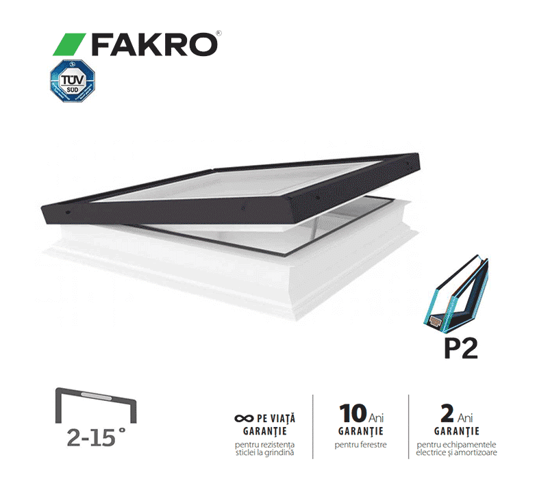 - Fereastra manuala acoperis tip terasa FAKRO DMG are o înfăţişare modernă şi atractivă, fiind caracterizată de parametri de izolare termică excelenţi.