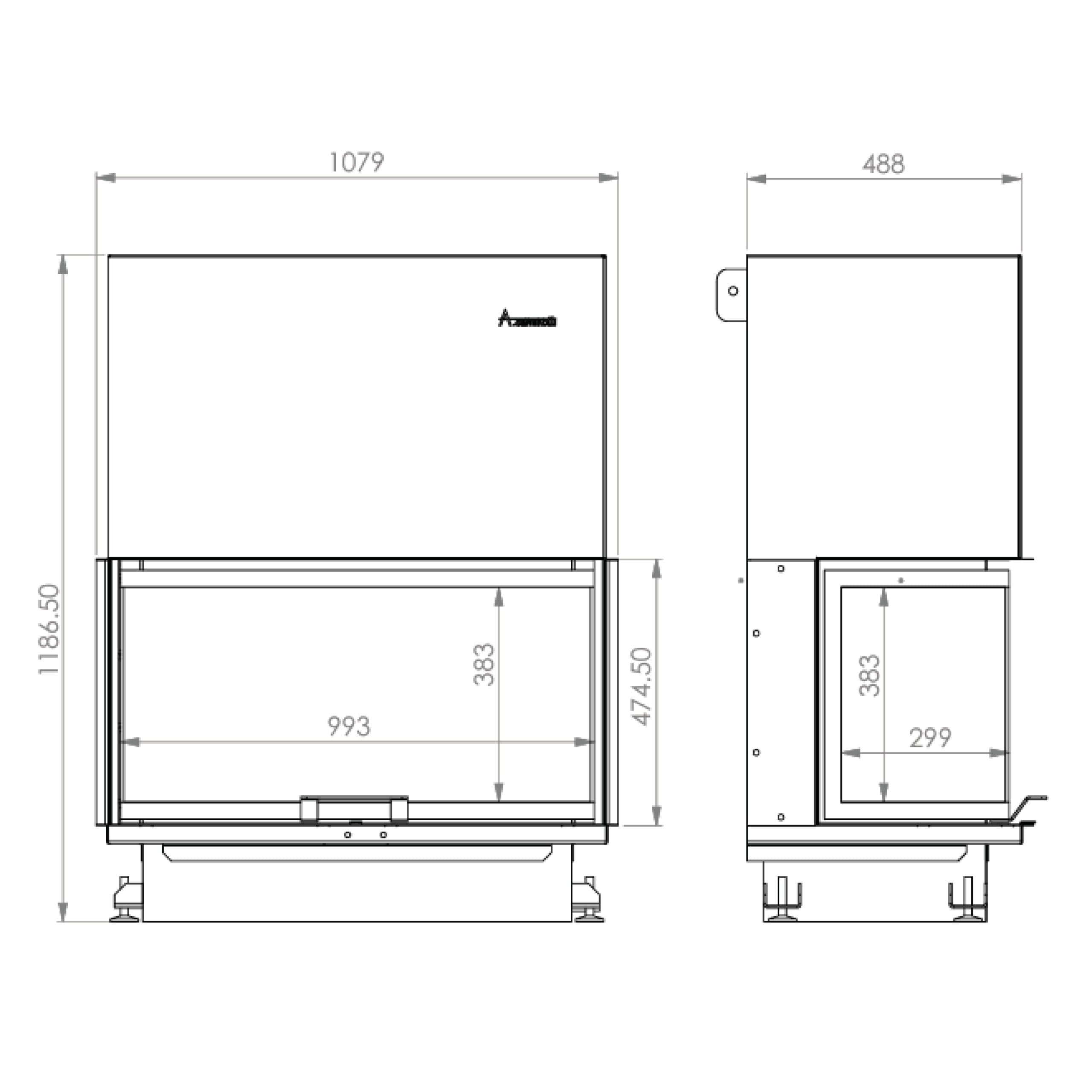 Focar de șemineu – A.Caminetti Crystal 110 ECO Series – Geam panoramic 3 suprafețe vitrate, 18 KW, randament ≥70%, încorporabil, Garanție 5 ani.