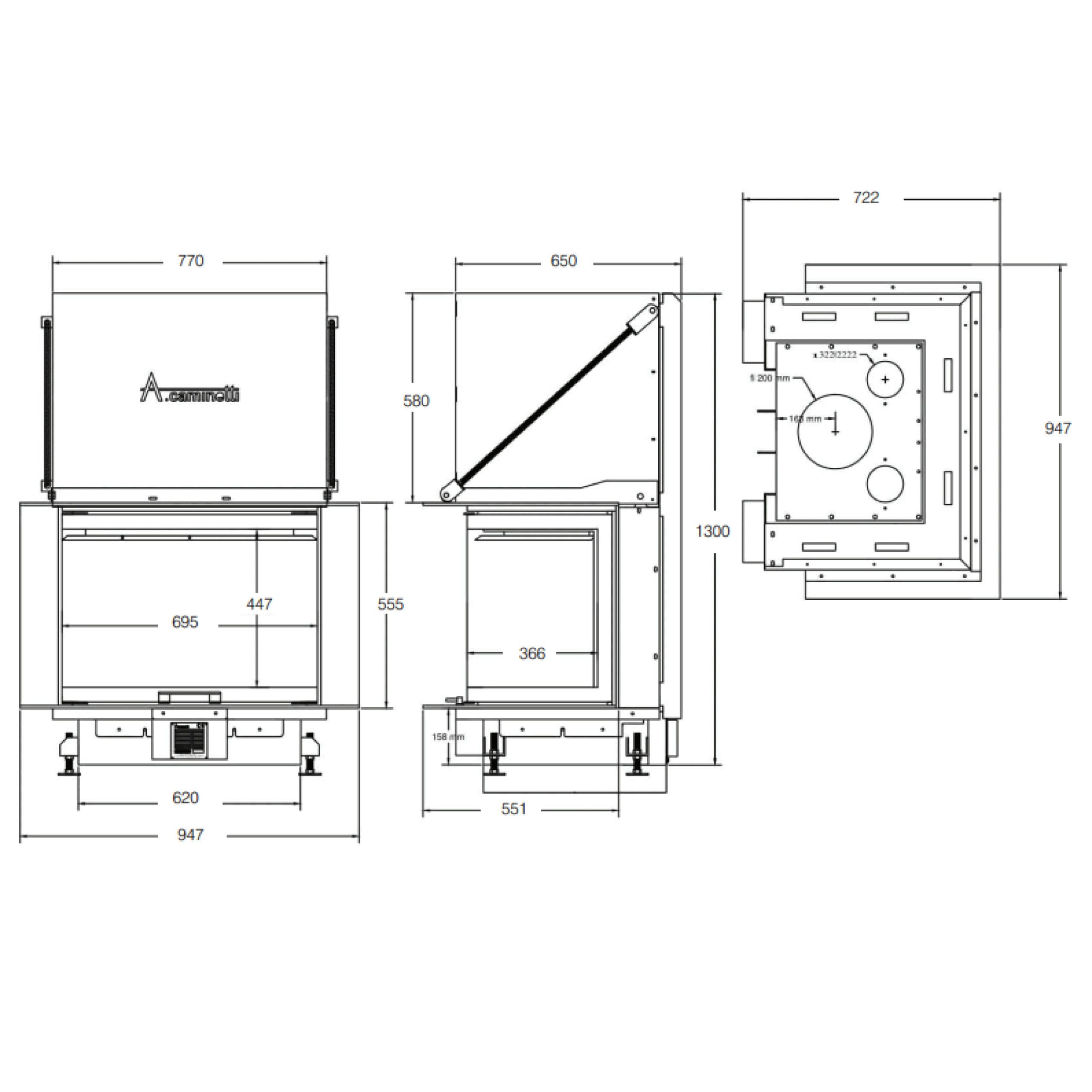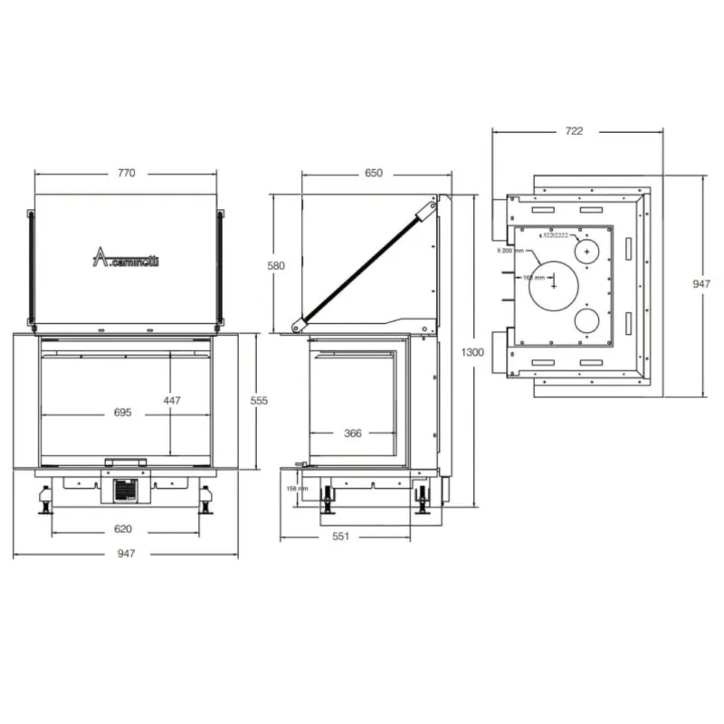 Focar de șemineu – A.Caminetti Crystal 80 MAX German Edition – Geam panoramic 3 suprafețe vitrate, 13 KW, randament 85%, încorporabil, Garanție 5 ani.