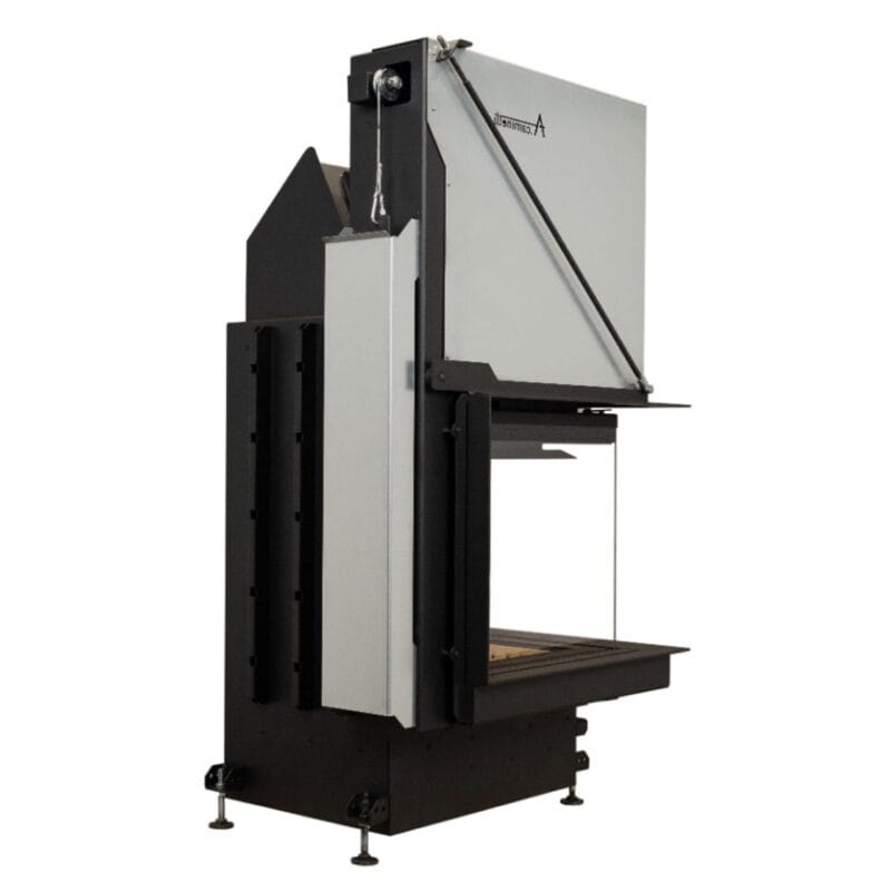 Mecanismul de ridicare verticală permite o alimentare rapidă și sigură cu lemne, fără a ocupa spațiu în fața șemineului. Opțiunea de deschidere laterală facilitează curățarea și întreținerea zilnică a geamului panoramic.