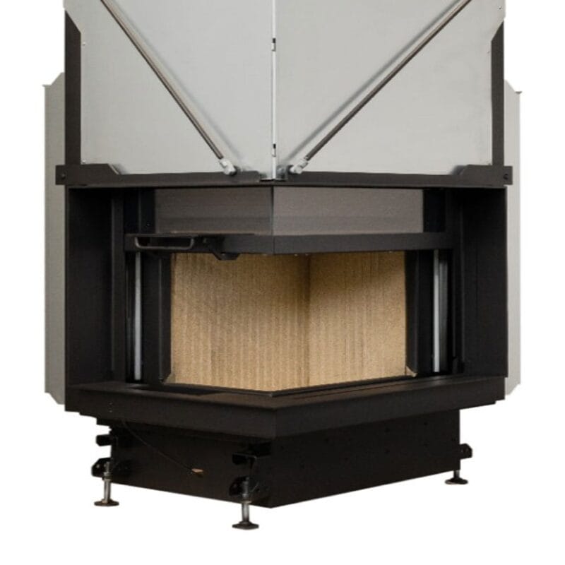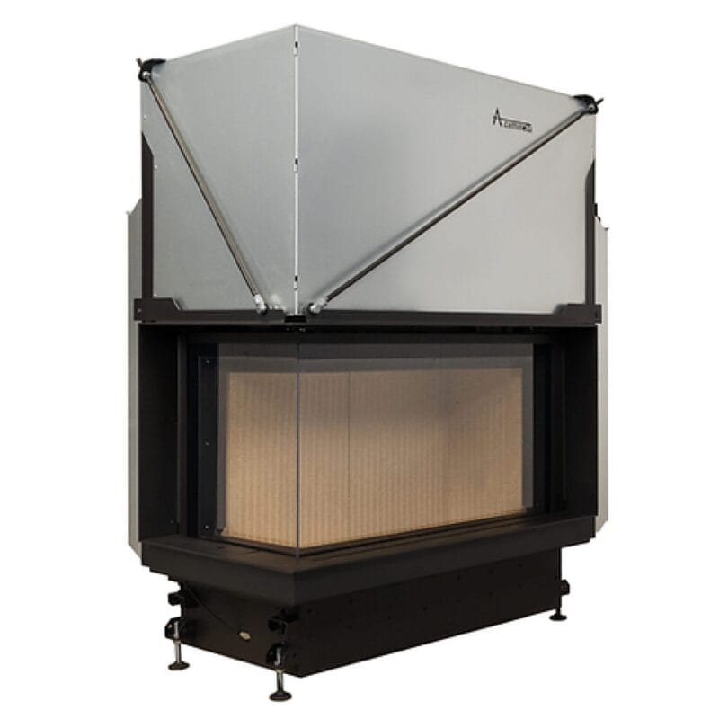 Focar de șemineu – A.caminetti Quattro 90 L Premium Edition – Colț panoramic stânga (L), 2 suprafețe vitrate, 14.8 KW, randament >80%, încorporabil, Garanție 5 ani.