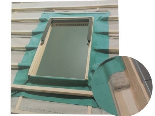 Kit-ul de izolare termica Fakro XDP este confecţionat din folie permeabilă la vapori, gama Eurotop şi protejează termoizolaţia din jurul ferestrei.