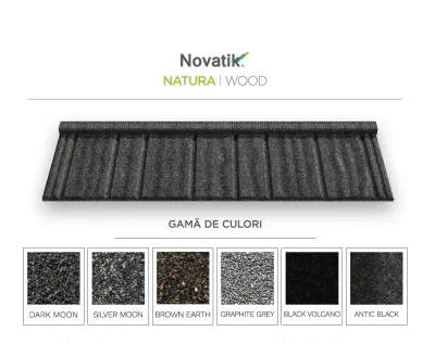 Novatik NATURA WOOD este o soluție pentru acoperiș extrem de eficientă și economică, ce păstrează aspectul natural al șindrilei de lemn. Astfel, grație acoperirii cu rocă vulcanică, orice construcție se va bucura de un rezultat arhitectural deosebit. În plus, fiind o șindrilă metalică, Natura Wood nu necesită întreținere suplimentară.