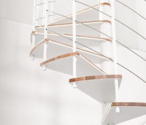 Scara spirală Fusion are trepte cu adevărat speciale: acestea sunt realizate pe jumătate din lemn masiv și pe jumătate din oțel vopsit în câmp electrostatic. Treptele pot fi montate fie cu partea metalică, fie cu partea din lemn orientată în sus. În funcție de suprafața preferată pentru locuința ta, ai opțiuni individuale de design cu scara spirală Fusion.