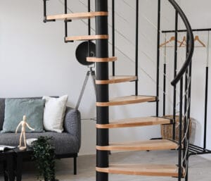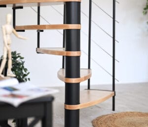 Ai spațiu limitat pentru a ajunge la etajul următor și dimensiunile standard ale multor scări pur și simplu nu se potrivesc? Nu mai este o problemă! Cu scara spirală Helios, poți tăia treptele la lungimea dorită. Benzi metalice vopsite în câmp electrostatic sunt folosite pentru a fixa treptele despicate și pentru a ascunde cu măiestrie tăietura.