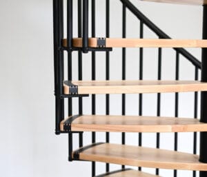 - În combinație cu treptele din lemn masiv european, scara spirală Luna este un model ideal pentru o utilizare sigură și de lungă durată.