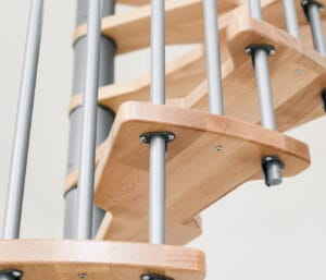 Treptele scării Metallica Smart sunt realizate din lemn masiv de fag. Acestea au decupaje pe partea stângă și dreaptă pentru a permite o construcție deosebit de compactă. În plus, sunt acoperite cu un strat de lac de înaltă calitate, care protejează materialul și îi conferă un luciu discret.