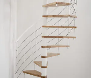 Scara spirală Venezia Smart aduce în locuința ta aerul ușor și elegant al designului italian. Combinația dintre treptele înguste din lemn și grinzile inferioare curbate conferă scării un aspect dinamic și modern. Datorită gamei variate de tipuri de lemn și culori metalice, Venezia Smart se potrivește perfect în numeroase stiluri de amenajare interioară. Balustrada din PVC face ca Venezia Smart să fie alegerea ideală pentru cei care apreciază o suprafață plăcută la atingere și un preț mai accesibil.