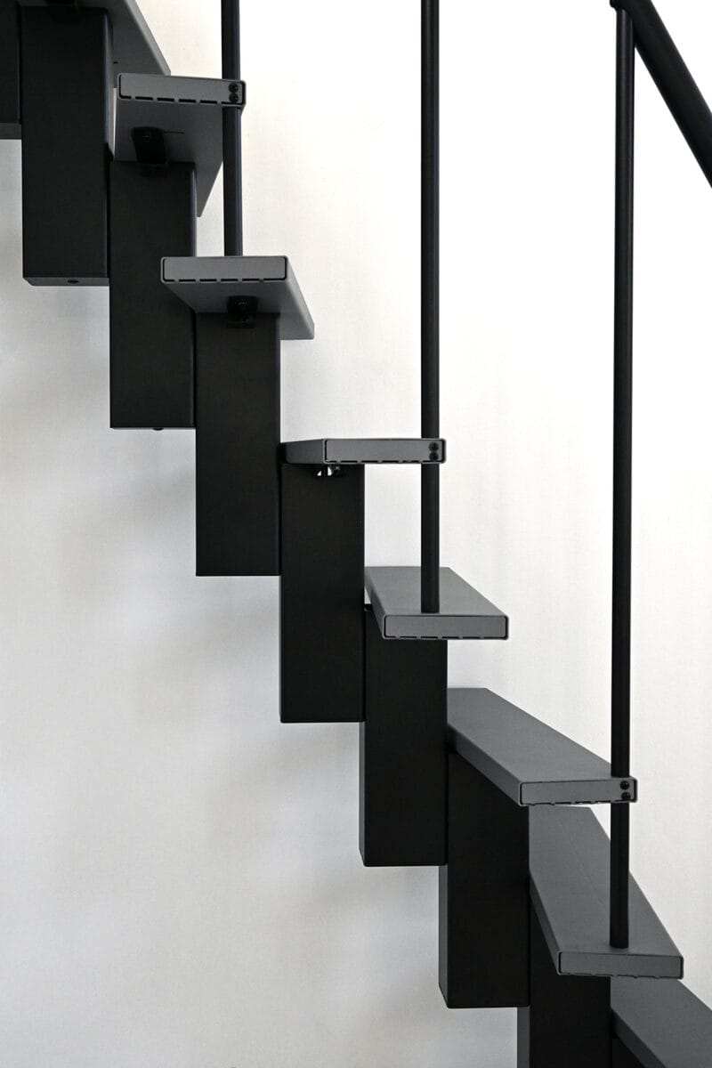 Happy este o scară cu stringer central, ideală pentru cei care caută o soluție compactă și elegantă. Îmbină designul modern cu funcționalitatea ridicată și se adaptează perfect cerințelor individuale datorită flexibilității sale.