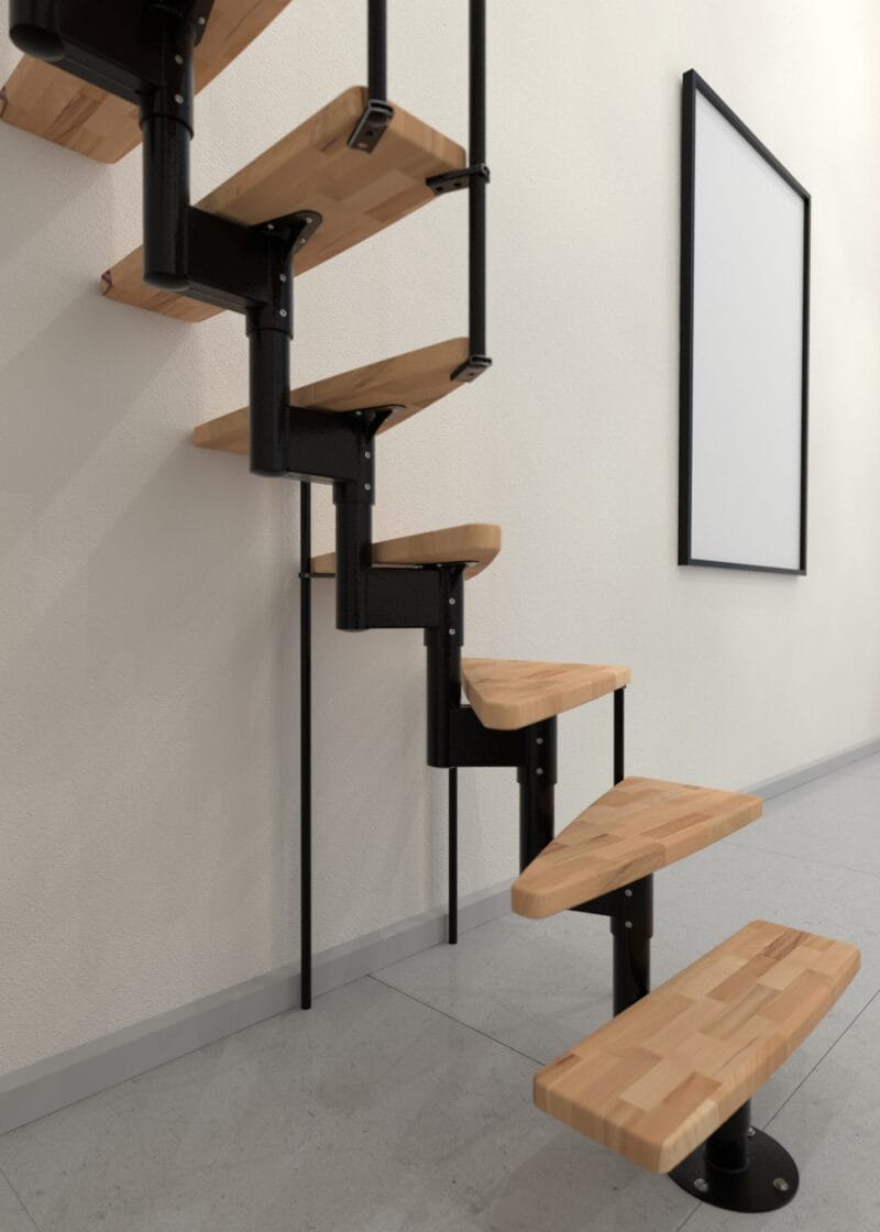 Joker Turn este o scară economisitoare de spațiu, cu întoarcere la 90°, ce îmbină armonios metalul și lemnul. Treptele dreptunghiulare oferă un mers confortabil, iar mâna curentă din lemn masiv este plăcută la utilizare. Cadru din oțel și barele balustradei asigură stabilitatea necesară la urcare.