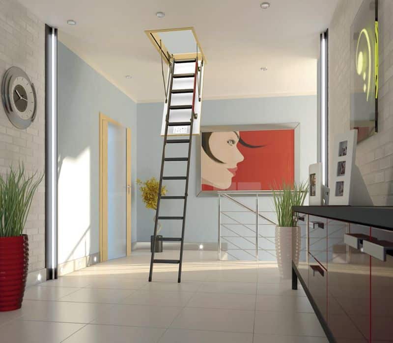 O alta varianta a scarilor metalice este FAKRO LML LUX, o scară de acces elegantă și versatilă, proiectată pentru a oferi acces ușor și sigur către podurile locuințelor, combinând designul estetic cu funcționalitatea și siguranța.