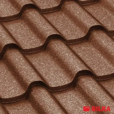 Țigla BILKA ROMANIC este profilată din oțel de grosime între 0,50 și 0,60 mm, zincat (Z225-Z275), acoperit cu un strat de vopsea în variantă lucioasă și mată.