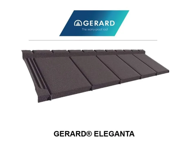 Noul profil de țiglă metalică GERARD Eleganta ofera prin caracteristicile sale unice oferă un finisaj atractiv care, în același timp, îmbunătățește rezistența la radiațiile UV. Granulele de piatră aplicate peste miezul de oţel protejat cu aluminiu-magneziu-zinc îi oferă profilului plat și modern un aspect delicat și elegant.
