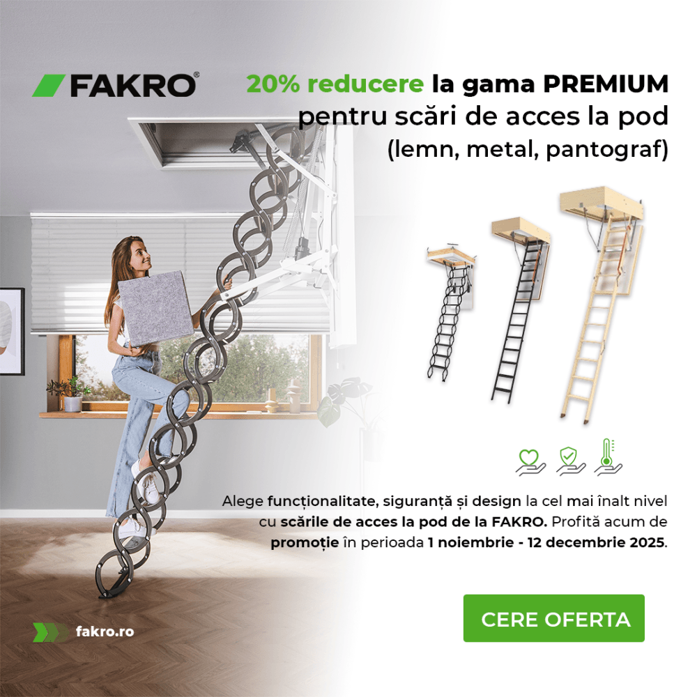 Alege funcționalitate, siguranță și design la cel mai înalt nivel cu scările de acces la pod de la FAKRO. Profită acum de promoţie în perioada 1 noiembrie – 12 decembrie 2025.